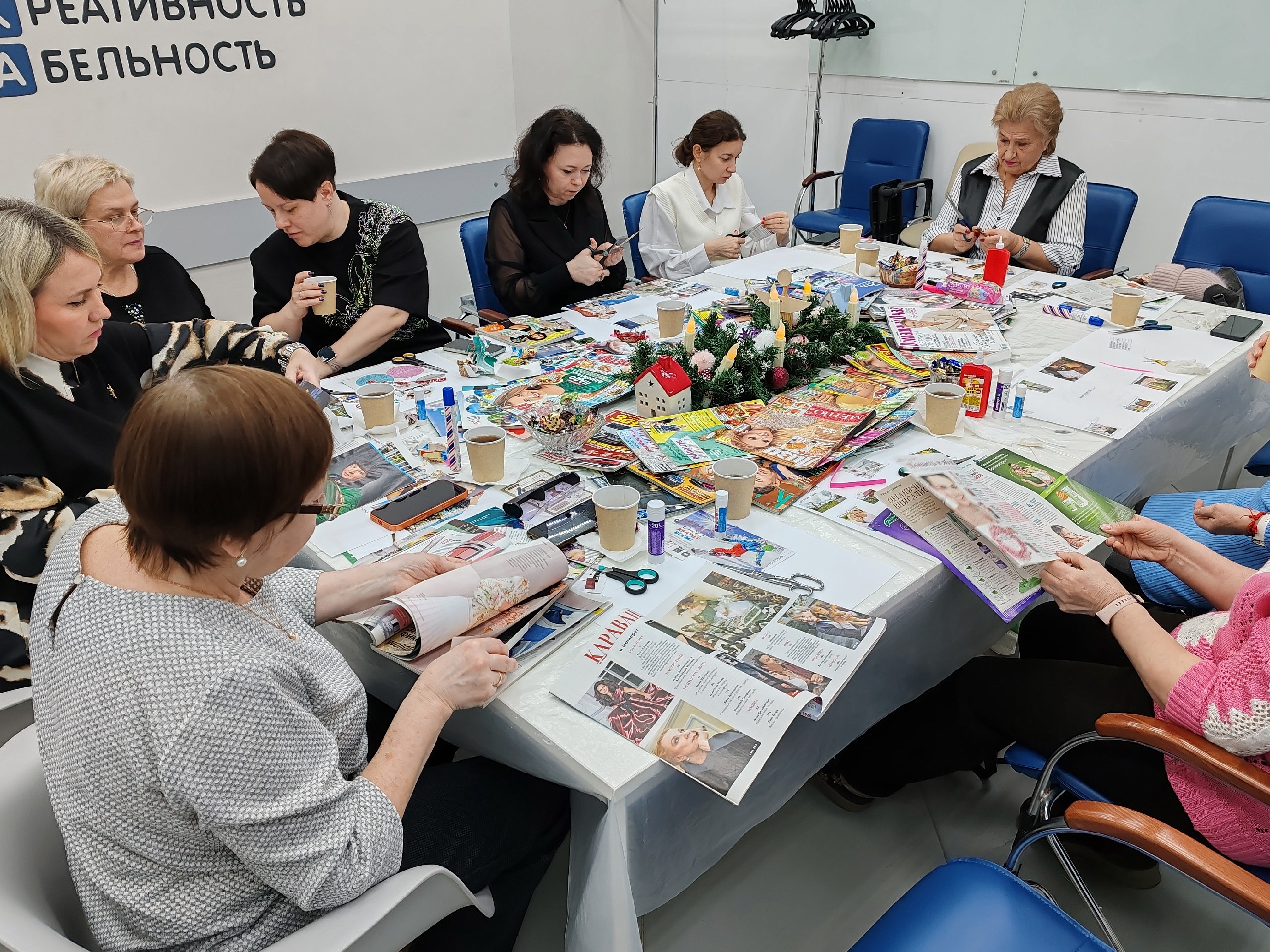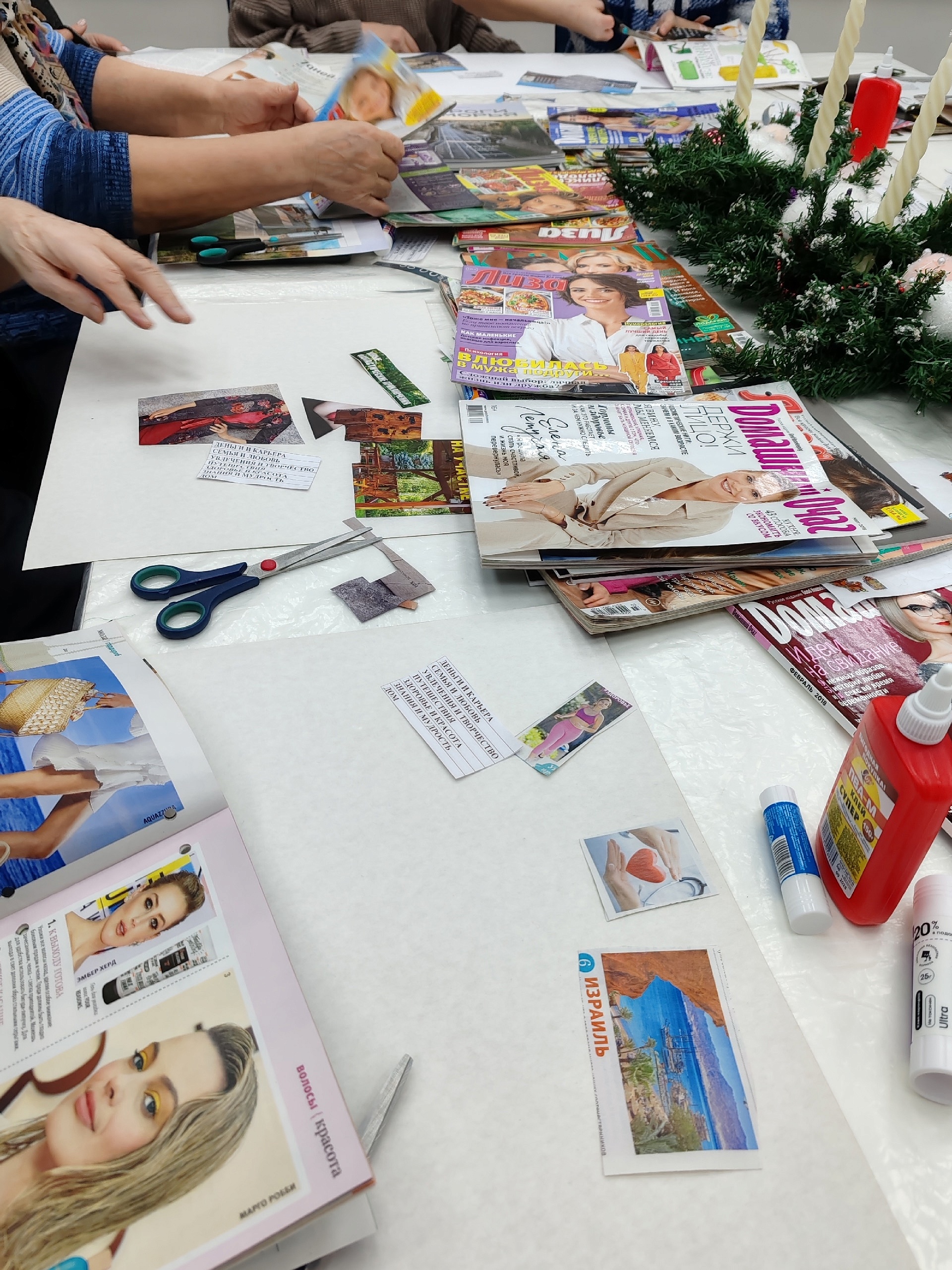 Участники мероприятия проявляли искреннюю заинтересованность и вовлеченность в процессе реализации своих творческих идей. Они оживленно составляли индивидуальные коллажи, воплощая мечты и планы на будущий год в красочных образах. Особенную атмосферу мероприятия придало ощущение обновления старых журналов, чьи страницы теперь подарят новое вдохновение каждому участнику.