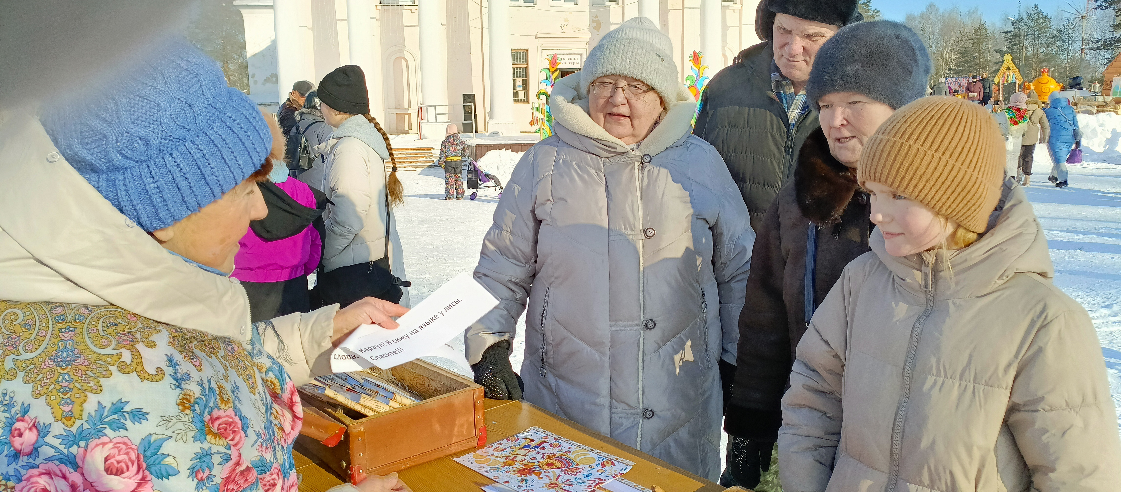 Гости активно участвовали в конкурсах и играх, посвященных русской культуре и истории. В конкурсе «Предметы старины мы отгадать должны» участникам предлагалось разгадать предметы старинного быта, такие как мутовка, рубель, веретено, туес и другие, а в весёлой игре «Путанка» нужно было распутать ошибочные названия русских сказок, это символизировало избавление от зимних забот. Знание народных русских сказок и умение мыслить ассоциативно проверили в интеллектуальном состязании «Угадай сказку по одному слову», а свою эрудицию — в конкурсе «Собери русскую пословицу».